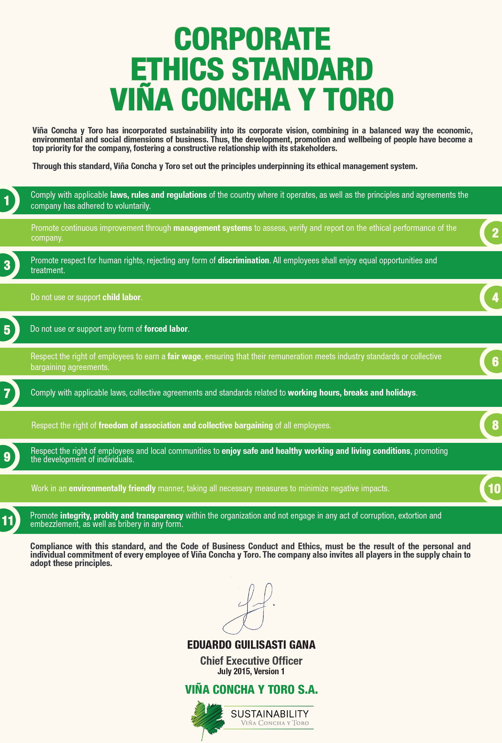 VCT Sweden´s etiska kod, enligt det chilenska moderbolaget Viña Concha y Toro.