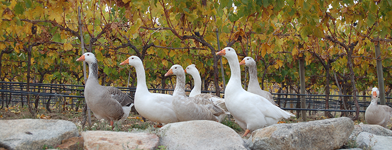 Istället för syntetiska bekämpningsmedel, växtgifter och gödsel används för området naturliga produkter som innehåller svavel, kväve, koppar och kalcium. Druvskal, stjälkar och djurspillning blir till kompost. Ogräs hålls borta med hjälp av olika djur som till exempel alpackor, getter, gäss och hönor. Som gödning används gräs och baljväxter för att tillföra kväve till jorden.